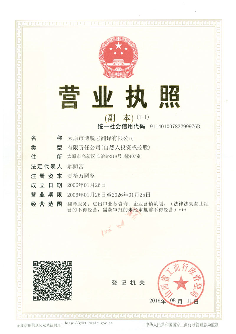 版權所有:太原市博銳志翻譯有限公司  聯(lián)系電話:0351-7025929